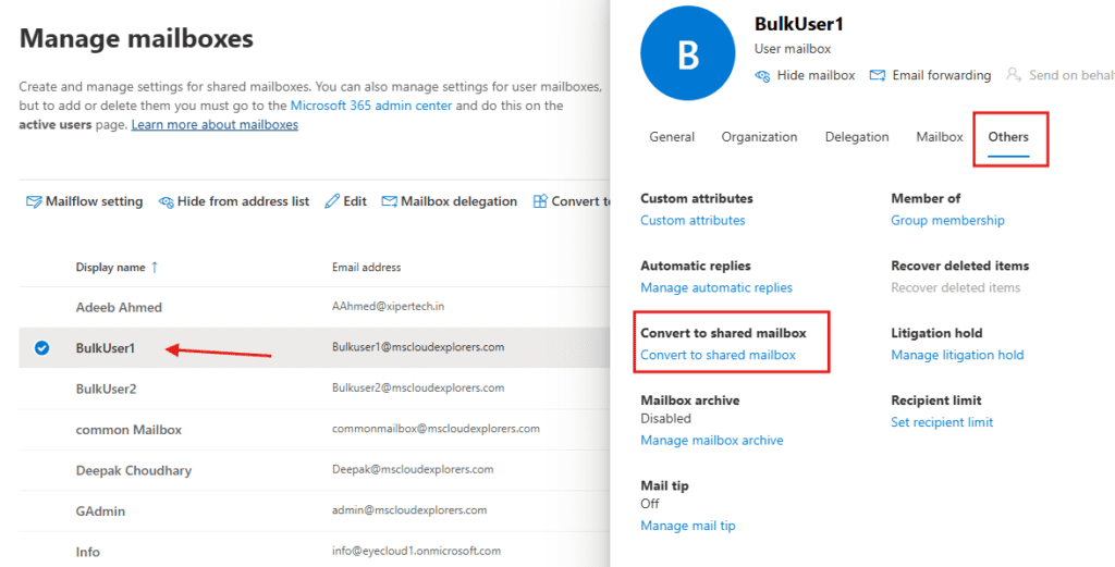 Here are the steps on how to convert a User Mailbox to a Shared Mailbox