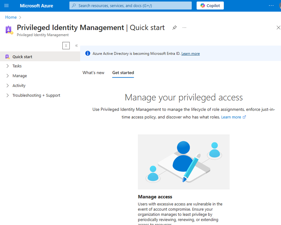 - Navigate to Privileged Identity Management under the ID Governance menu.