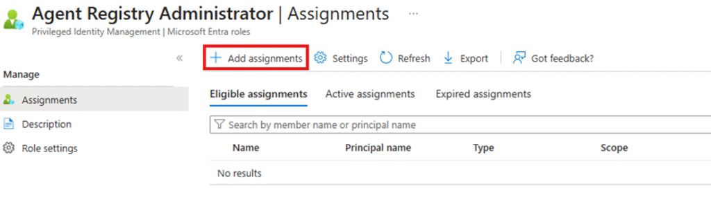 - Select the role you want to manage and click Add assignments.