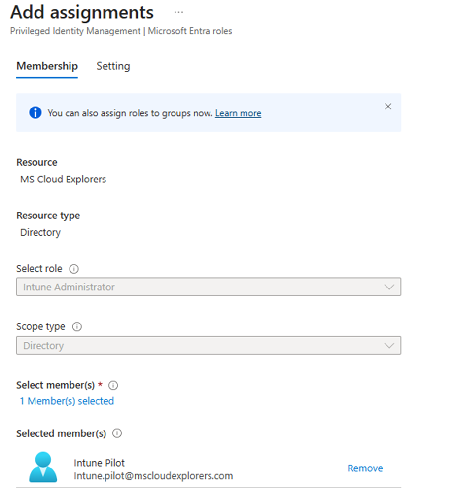 - Under the settings Choose Eligible or Active. (I have explained Briefly about Eligible Assignment below in this blog). So, I’m choosing here Active.