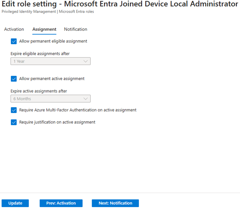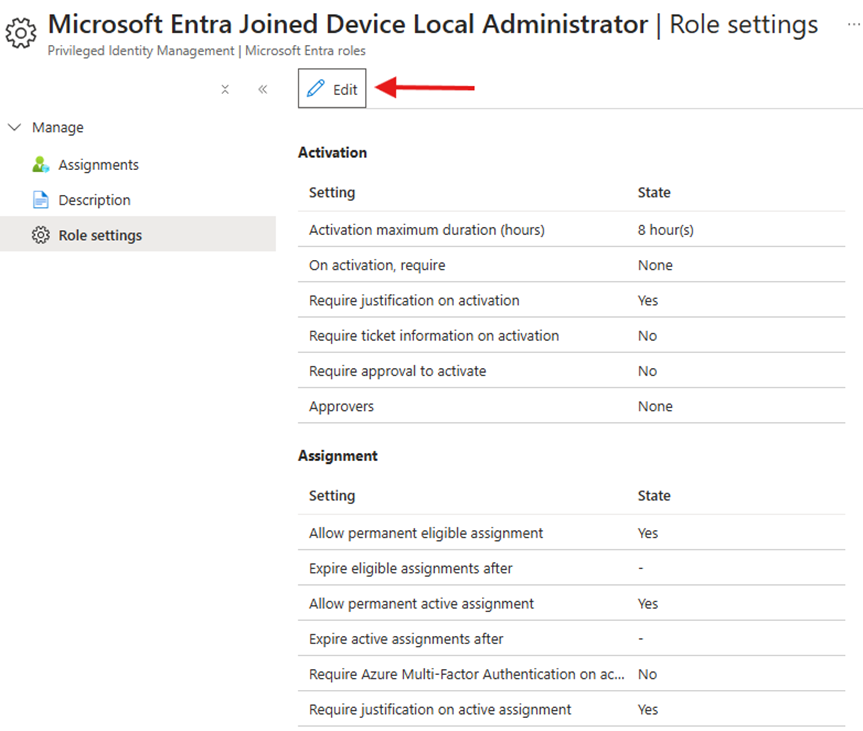 Modifying Role Settings for Eligible Assignments