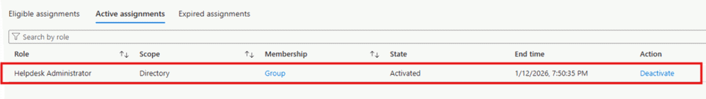For lower-privileged roles such as Helpdesk Administrator, User Administrator, or Exchange Administrator, you can assign users as Eligible with a maximum activation duration of up to 8 hours. These roles can typically be activated using justification only, without approval.