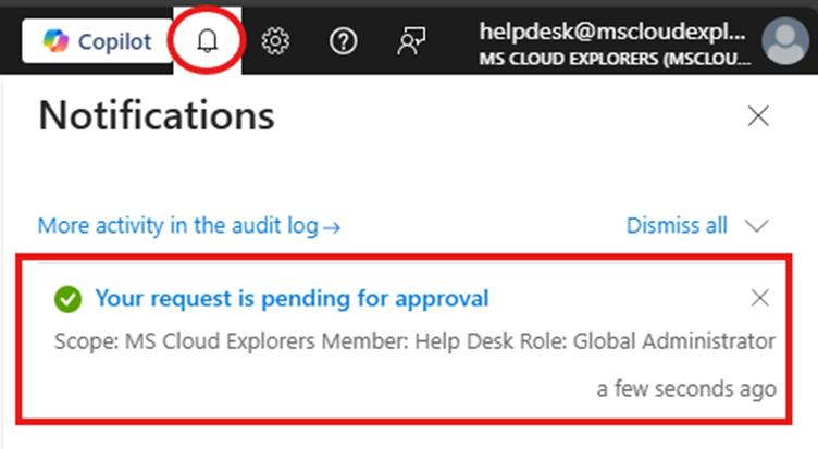 - The Global Administrator role requires approval before activation.