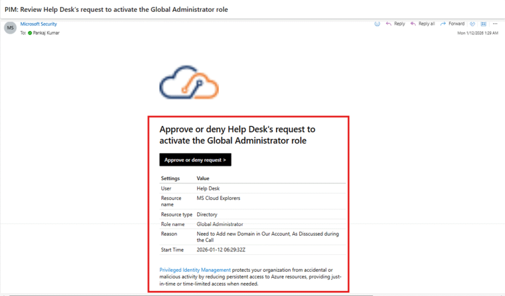 - All PIM approvers receive an email notification.