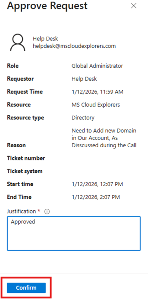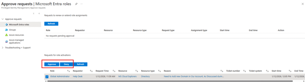 - Clicking Approve or Deny redirects them to the Entra Admin Portal – Approve Requests page.