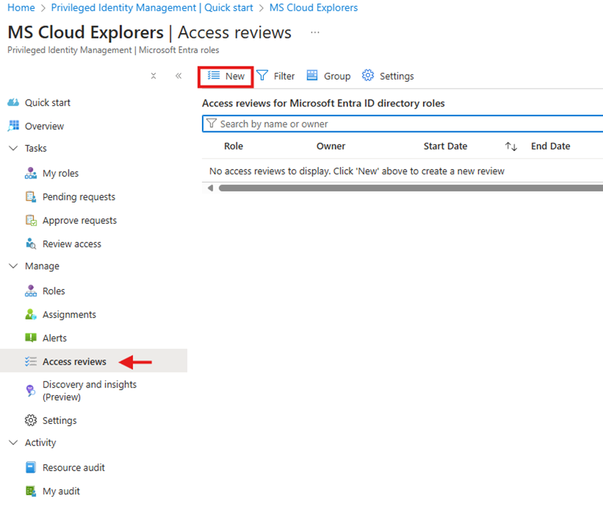 - Go to PIM > Access Reviews