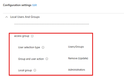 - Configuration Settings: In Configuration Settings, under Local Group, select Administrators.