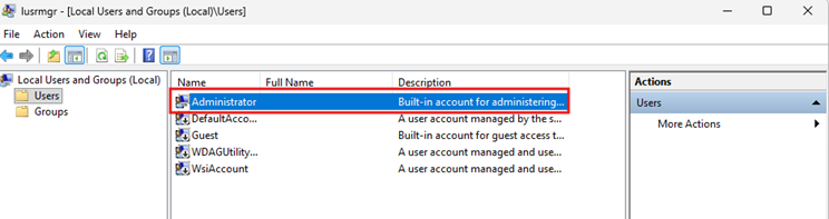 This configuration profile will enable the default local Administrator account on the device. You can verify this in the device’s Local Users and Groups settings.