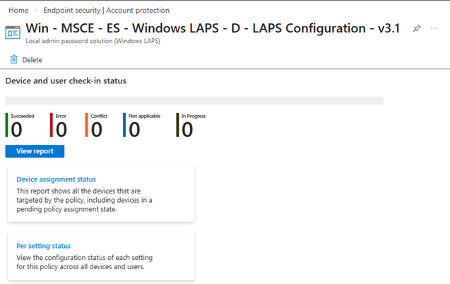 - Monitor Deployment: Monitor the deployment process to ensure that all devices in the targeted groups are successfully configured with LAPS.