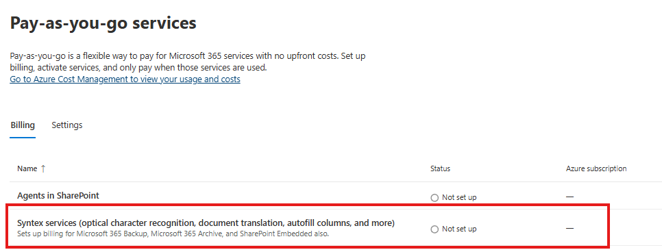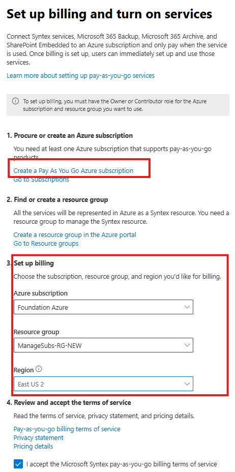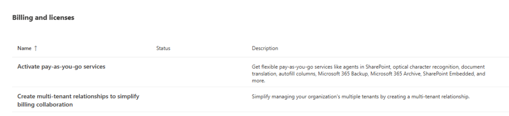 • New Setup windows will appear. Under the Billing and Licenses select the Activate pay-as-you-go services.